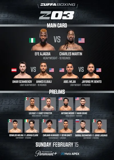 Gala Zuffa Boxing 3 w Meta APEX w Las Vegas. W walce wieczoru Nigeryjczyk Efe Ajagba (20-1-1, 14 KO) zmierzył się z Amerykaninem Charlesem Martinem (30-4-1, 27 KO).