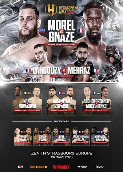 Gala Hexagone MMA 41 odbywa się w Strasburgu we Francji. Najlepsi zawodnicy mieszanych sztuk walki zmierzą się w emocjonujących walkach na najwyższym poziomie. Wieczór obfitować będzie w pojedynki o pasy mistrzowskie, wielkie sportowe emocje i nieprzewidywalne zwroty akcji. To obowiązkowa pozycja dla fanów MMA!