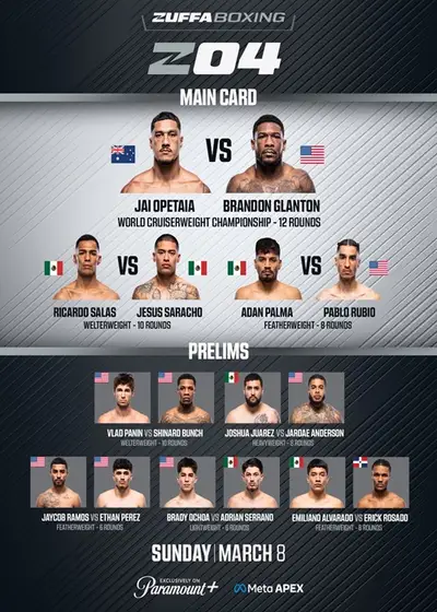 Gala Zuffa Boxing 4 w Meta APEX w Las Vegas. W walce wieczoru zmierzyli się broniący pasa mistrzowskiego federacji IBF w wadze cruiser Australijczyk Jai Opetaia (29-0, 23 KO) i Amerykanin Brandon Glanton (21-3, 18 KO).